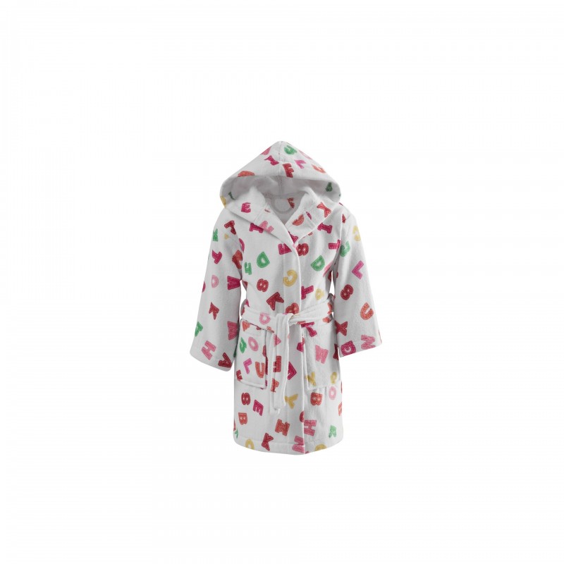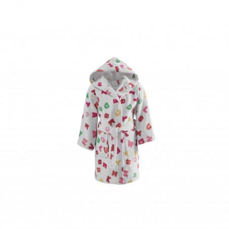 Μπουρνούζι παιδικό/εφηβικό με κουκούλα και κέντημα, από ύφασμα φροτέ πενιέ 430 γρ., 100% βαμβακερό, μονόχρωμο, γκρι.