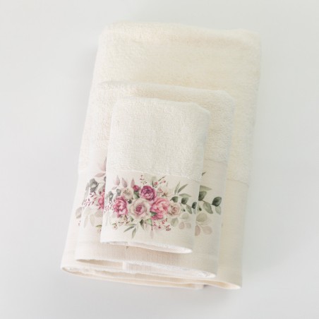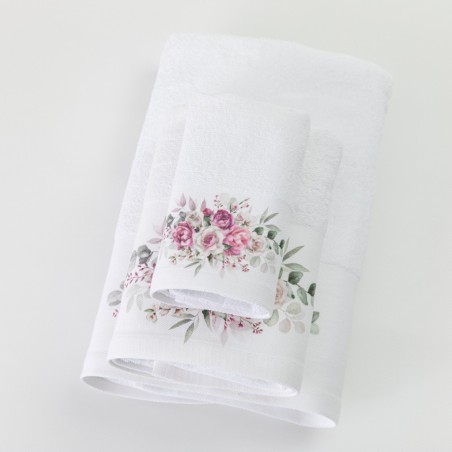 Σετ πετσέτες 3 τεμαχίων, μπάνιου, προσώπου και χειρός, από ύφασμα φροτέ, πενιέ, 100% βαμβακερό, με ψηφιακή εκτύπωση.Διατίθεται σε 2 χρώματα.