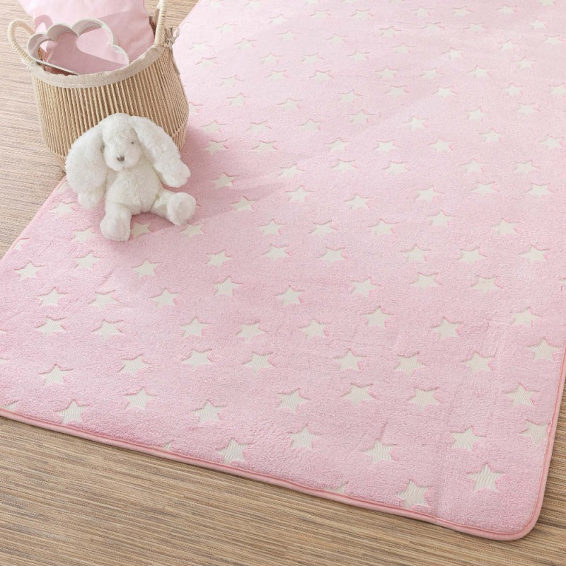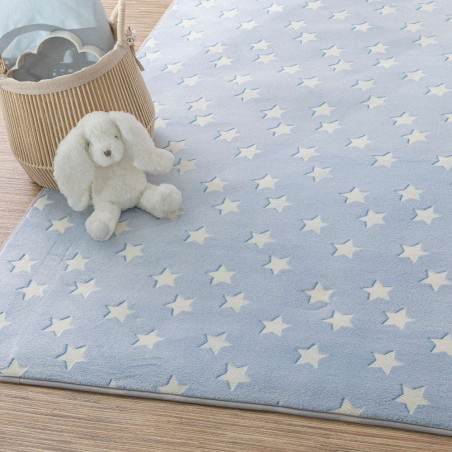 Παιδικό χαλί από ύφασμα φλάνελ,100% πολυέστερ, με αντιολισθητικό υπόστρωμα, εμπριμέ, με φωσφορίζοντα στο σκοτάδι αστεράκια.