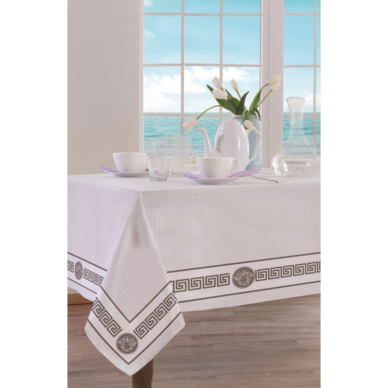 Τραπεζομάντηλο από ύφασμα λονέτα 50% βαμβακερό-50% πολυέστερ, εμπριμέ, με damask σχέδιο.