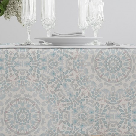 Τραπεζομάντηλο από ύφασμα λονέτα 50% βαμβακερό-50% πολυέστερ, εμπριμέ, με γεωμετρικό σχέδιο.