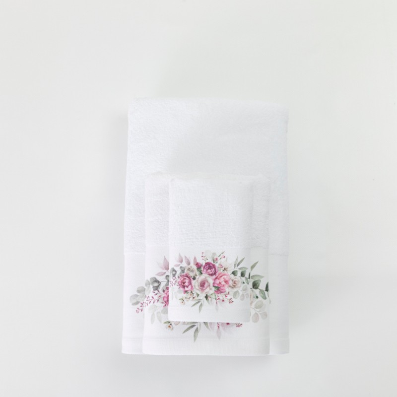 Σετ πετσέτες 3 τεμαχίων, μπάνιου, προσώπου και χειρός, από ύφασμα φροτέ, πενιέ, 100% βαμβακερό, με ψηφιακή εκτύπωση.Διατίθεται σε 2 χρώματα.