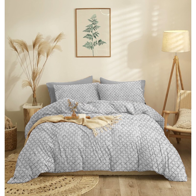 Το Σετ Σεντονιών Serpa Grey, της σειράς Marta, χαρίζει την τόλμη ενός ελεύθερου μοτίβου ζωγραφικής. Γίνεται ο καμβάς όπου δυναμικές πιτσιλιές γεμίζουν το χώρο θυμίζοντας στο υποσυνείδητό μας πόση ανάγκη έχουμε τη χαλάρωση στον προσωπικό μας χώρο. Οι αρμονικά συνδυασμένες μαξιλαροθήκες συμπληρώνουν την εικόνα του κρεββατιού. Αφεθείτε στη φιλική αγκαλιά για ν’ απολαμβάνετε έναν ξεκούραστο ύπνο.