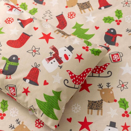 Σετ σεντόνι μονό με μαξιλαροθήκη, από ύφασμα μερσεριζέ, 160 κλωστών, 100% βαμβακερό, εμπριμέ, με χριστουγεννιάτικο σχέδιο. Συνδυάστε με κατωσέντονα από τις σειρές Solid ή Christmas Line.