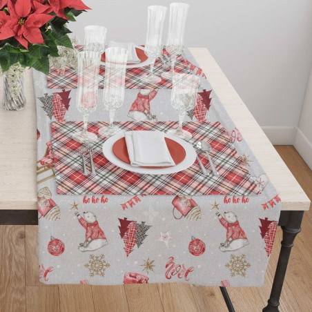 Τραβέρσα από ύφασμα λονέτα 50% βαμβακερό-50% πολυέστερ, με εμπριμέ χριστουγεννιάτικο σχέδιο.
