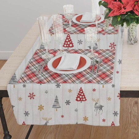 Τραβέρσα από ύφασμα λονέτα 50% βαμβακερό-50% πολυέστερ, με εμπριμέ χριστουγεννιάτικο σχέδιο.