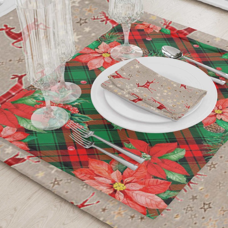 Τραπεζομάντηλο από ύφασμα λονέτα 50% βαμβακερό-50% πολυέστερ, με εμπριμέ χριστουγεννιάτικο σχέδιο.