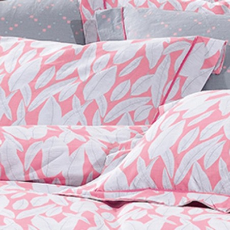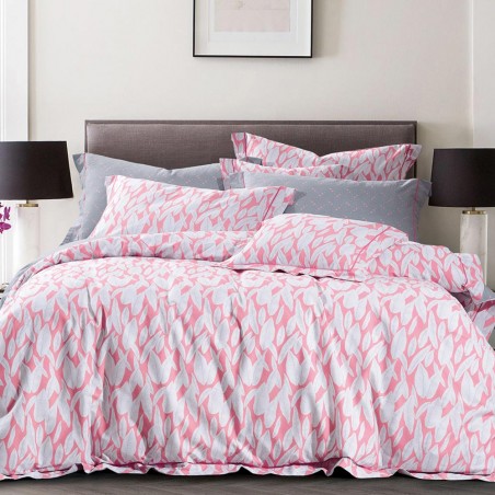 Σετ παπλωματοθήκη με φερμουάρ υπέρδιπλη με μαξιλαροθήκες oxford style από ύφασμα βαμβακοσατέν, 205 κλωστών, 100% βαμβακερό, εμπριμέ, συνδυασμός γεωμετρικών και φλοράλ μοτίβων, σε κοράλ και γκρι αποχρώσεις, με φυτίλι στην μπροστινή όψη και στις μαξιλαροθήκες.