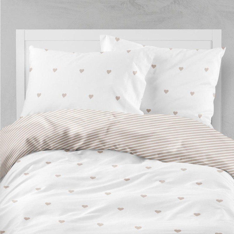 Σεντόνι μονό, μεμονωμένο, από ύφασμα μερσεριζέ, 160 κλωστών, 100% βαμβακερό, εμπριμέ, σχέδιο καρδιές, σε 3 διαφορετικές αποχρώσεις. Δημιουργήστε τους δικούς σας μοναδικούς χρωματικούς συνδυασμούς χρησιμοποιώντας προϊόντα από τις σειρές Solid και Mix & Match. Το μόνο όριο είναι η φαντασία σας.