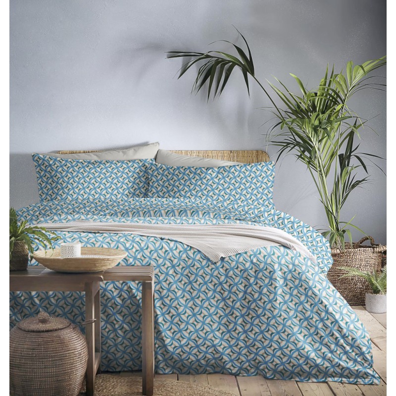 Το Σετ Σεντονιών HELIX Blue, της σειράς Marta, γεμίζει το κρεβάτι σας με χρωματιστούς ανεμόμυλους που χορεύουν στο γλυκό αεράκι της Άνοιξης. Μία αρμονική κίνηση χαλάρωσης που σας προσκαλεί να απολαύσετε ηρεμία απολαμβάνοντας την κρεβατοκάμαρά σας. Οι αρμονικά συνδυασμένες μαξιλαροθήκες συμπληρώνουν την εικόνα του κρεββατιού. Αφεθείτε στη φιλική αγκαλιά για ν’ απολαμβάνετε έναν ξεκούραστο ύπνο.